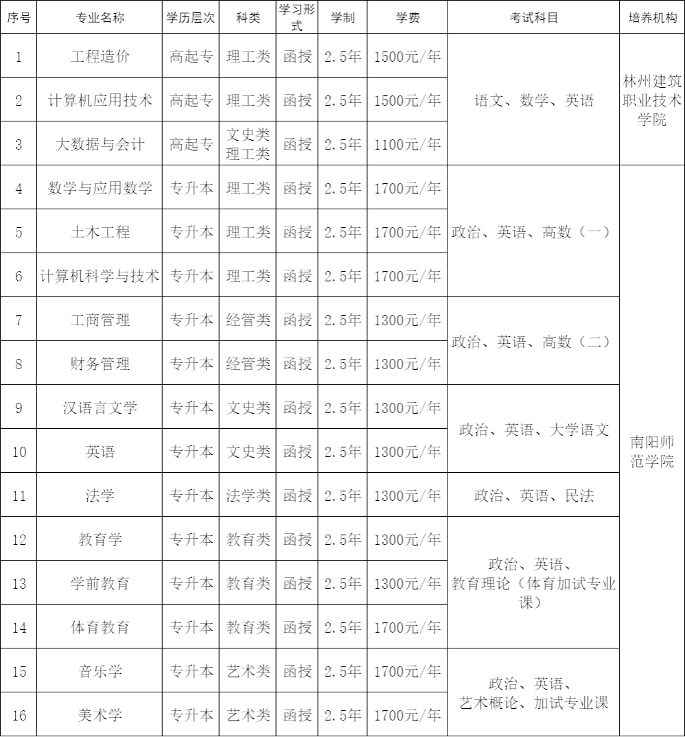 2.录取:学院严格执行招生录取政策规定,坚持公开、公平、公正原则,按照考生成人高考成绩由高到低择优录取,考生可于12月中旬登录“河南省教育考试院”网站查询录取结果,学校统一印制、发放录取通知书。