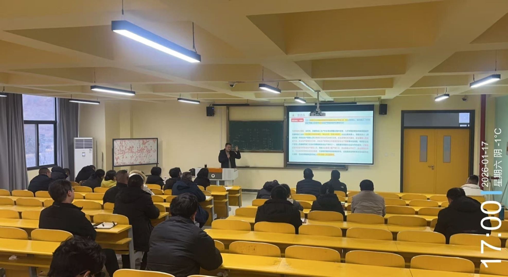 2026年1月17日,由我校产教融合处同林州市建筑业管理局共同举办的2026年第1期建筑企业安全管理人员培训班顺利开班!本次培训于2026年1月17日开始,至1月21日结束,1月22日进行考试。培训及考试时间共6天,考试学员共计88人。